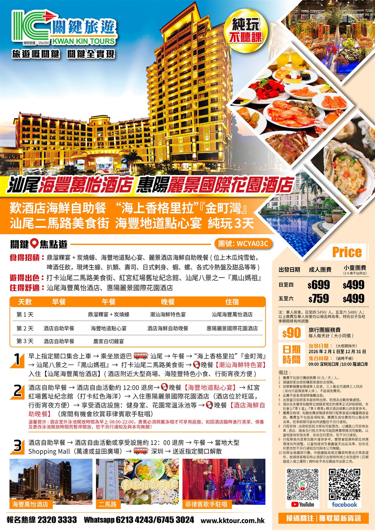 C線-汕尾海豐萬怡酒店 惠陽麗景國際花園酒店(歎酒店海鮮自助餐)汕尾二馬路美食街 純玩3天