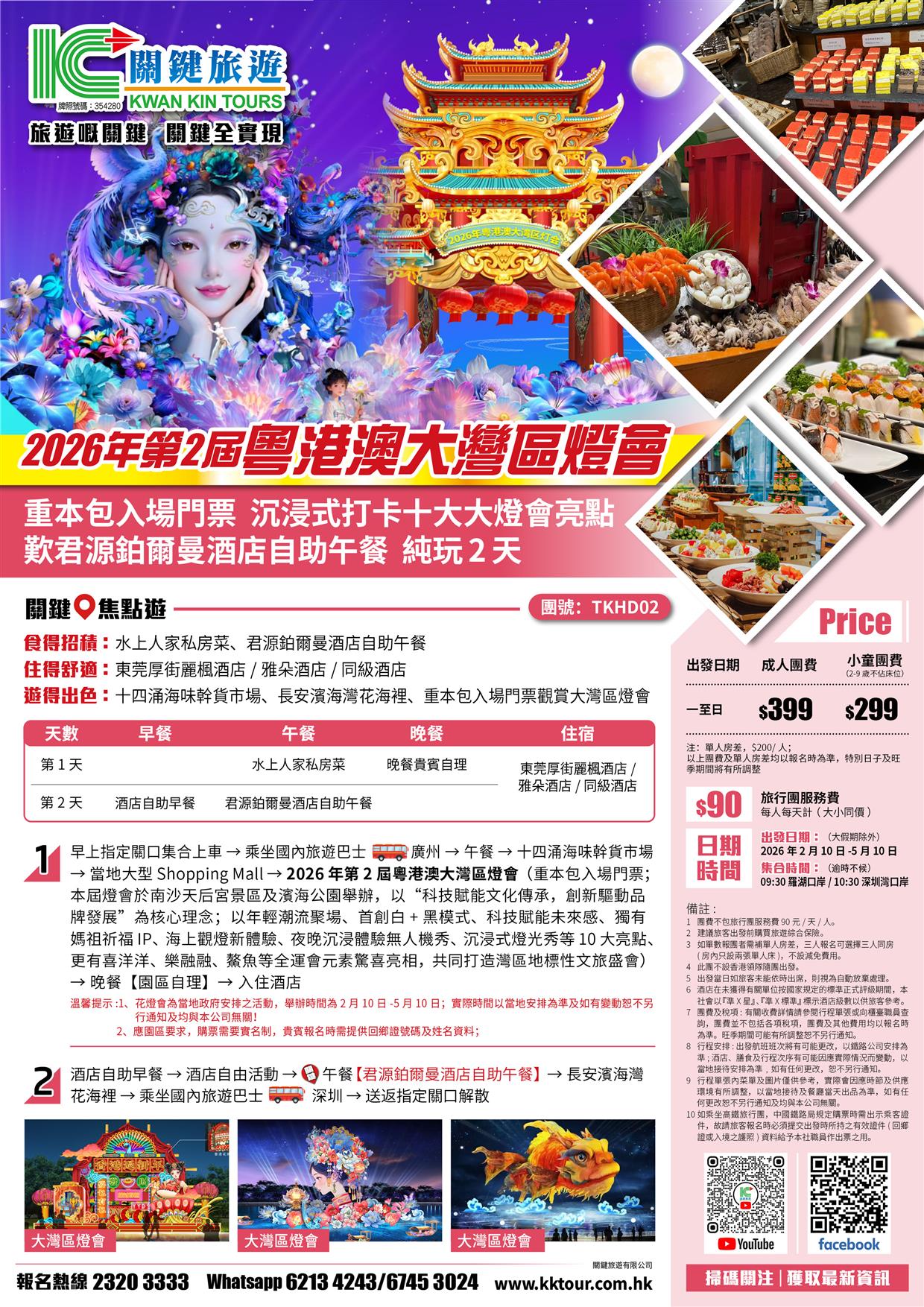 第2屆粵港澳大灣區燈會(重本包入場門票)、君源鉑爾曼酒店自助午餐純玩2天