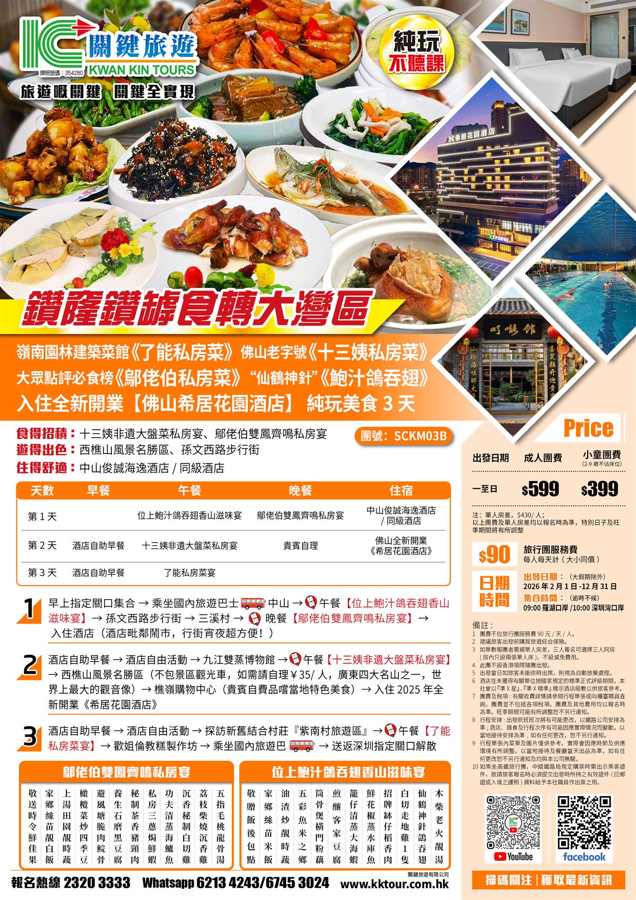 B線-鑽窿鑽罅食轉大灣區【鄔佬伯私房菜、仙鶴神針鮑汁鴿吞翅、了能私房菜、十三姨私房菜】純玩3天