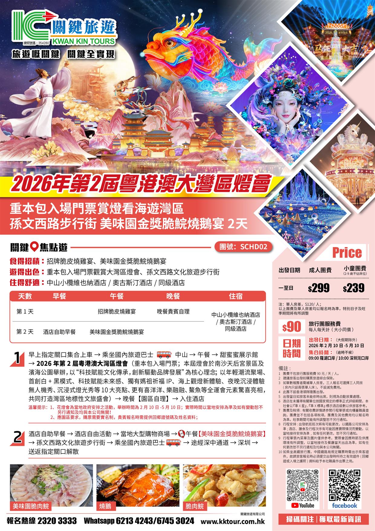 第2屆粵港澳大灣區燈會、重本包入場門票賞燈看海遊灣區、中山美味園金獎脆鯇燒鵝宴2天