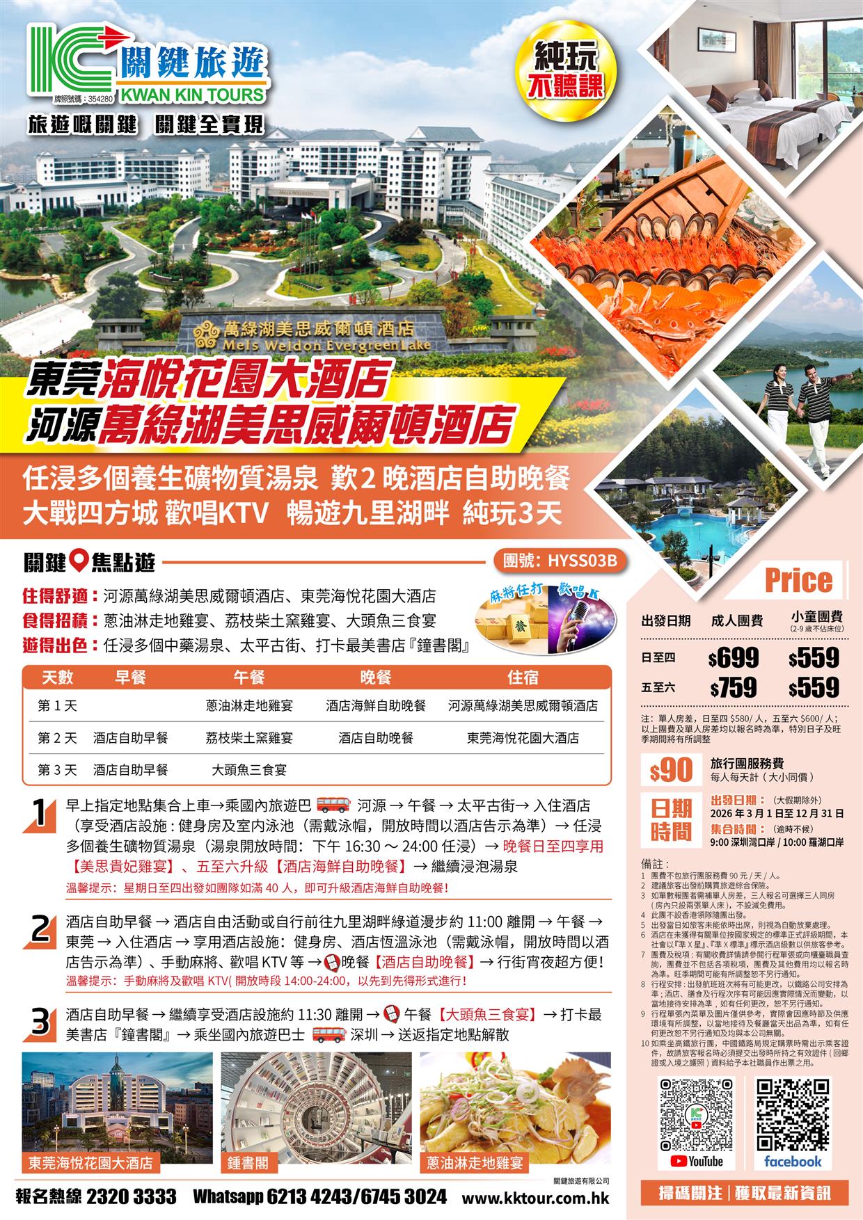 B線-東莞海悅花園大酒店 河源萬綠湖美思威爾頓酒店 歎2晚酒店自助晚餐 純玩3天