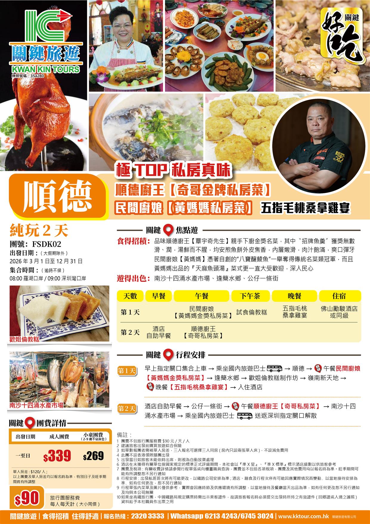 極TOP私房真味-順德廚王【奇哥金牌私房菜】、民間廚娘【黃媽媽私房菜】 美食純玩2天