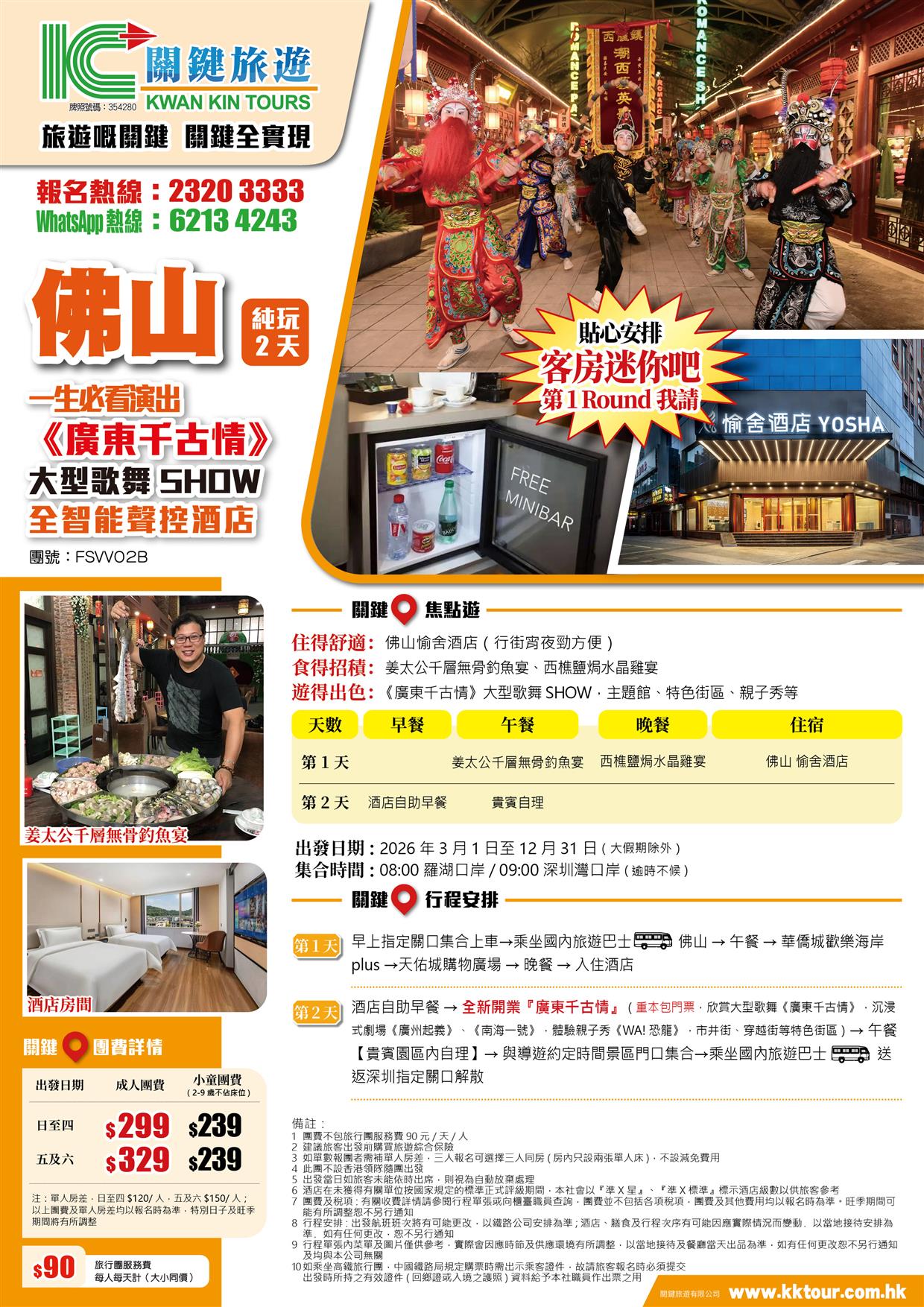 B線-佛山智能聲控酒店-愉舍酒店 重本包廣東千古情門票 純玩2天