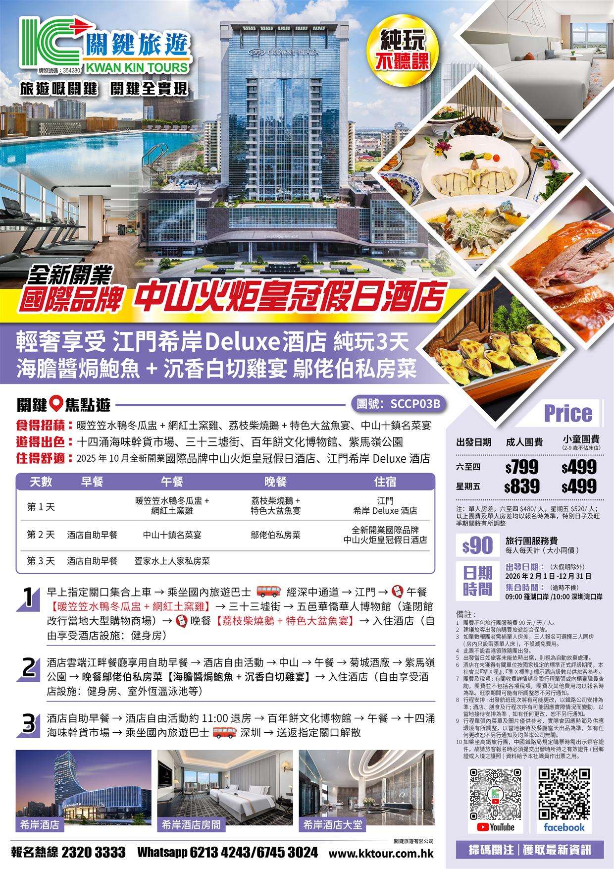 B線-中山火炬皇冠假日酒店、江門希岸Deluxe酒店、鄔佬伯私房菜純玩3天