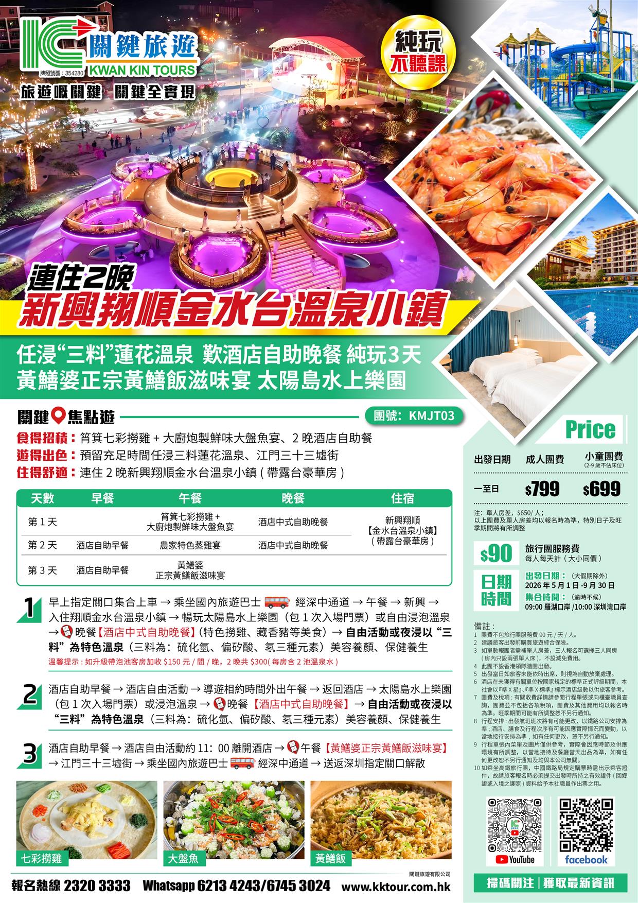 連住2晚新興翔順金水台溫泉小鎮 太陽島水上樂園 任浸三料蓮花溫泉 酒店自助餐純玩3天