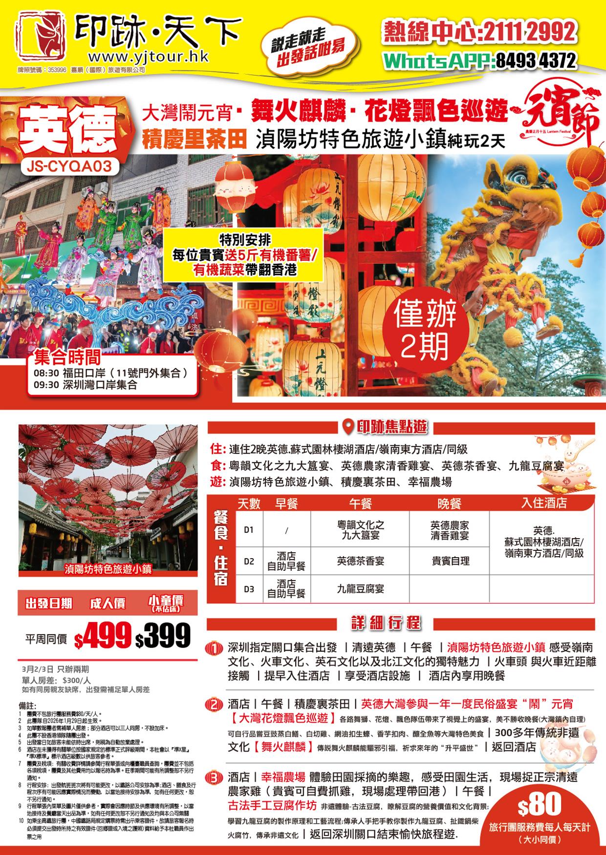 英德 大灣鬧元宵·舞火麒麟·花燈飄色巡遊 連住2晚英德.蘇式園林棲湖酒店純玩3天