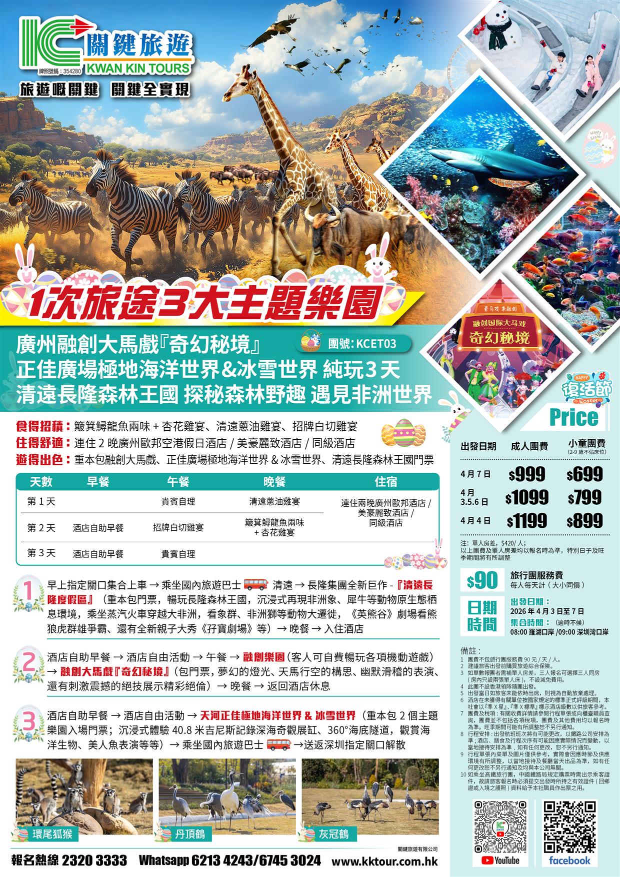 (復活加班)清遠長隆森林王國、融創大馬戲『奇幻秘境』、正佳廣場極地海洋世界&冰雪世界純玩3天