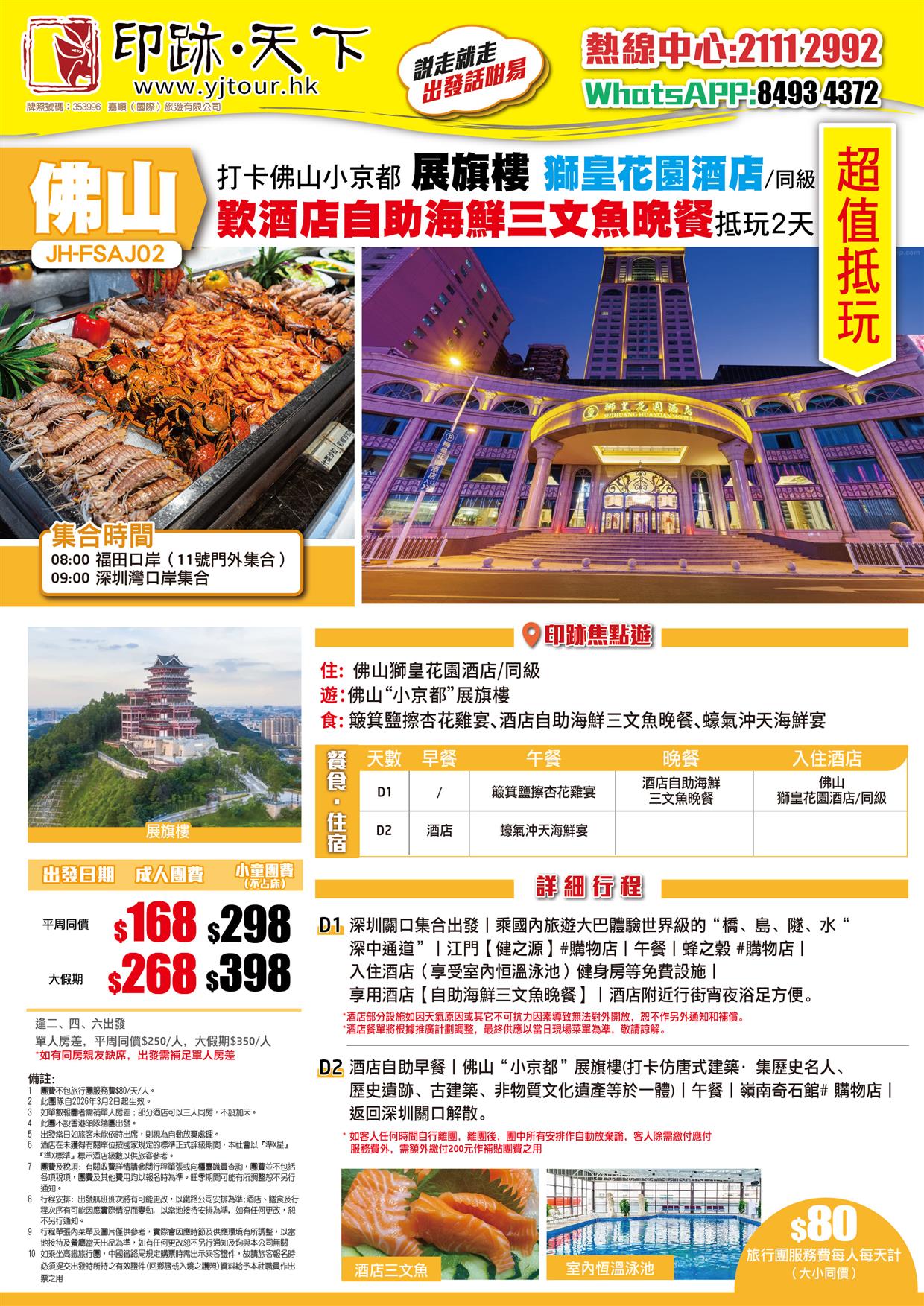 佛山 入住獅皇花園酒店/同級 歎酒店 自助海鮮三文魚晚餐 打卡【佛山 小京都】展旗樓 抵玩 2天