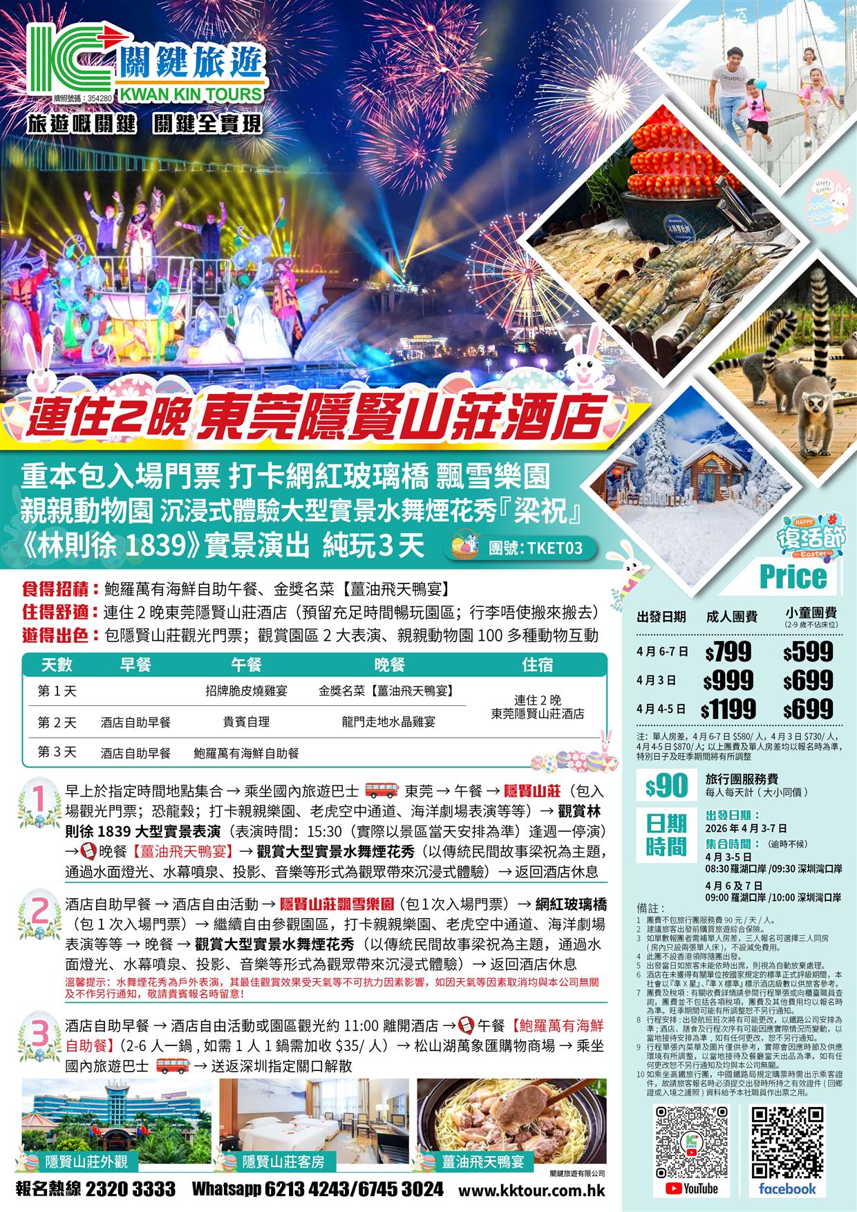 (復活加班)連住2晚 東莞隱賢山莊、水舞煙花秀、林則徐1839、鮑羅萬有海鮮自助餐純玩3天
