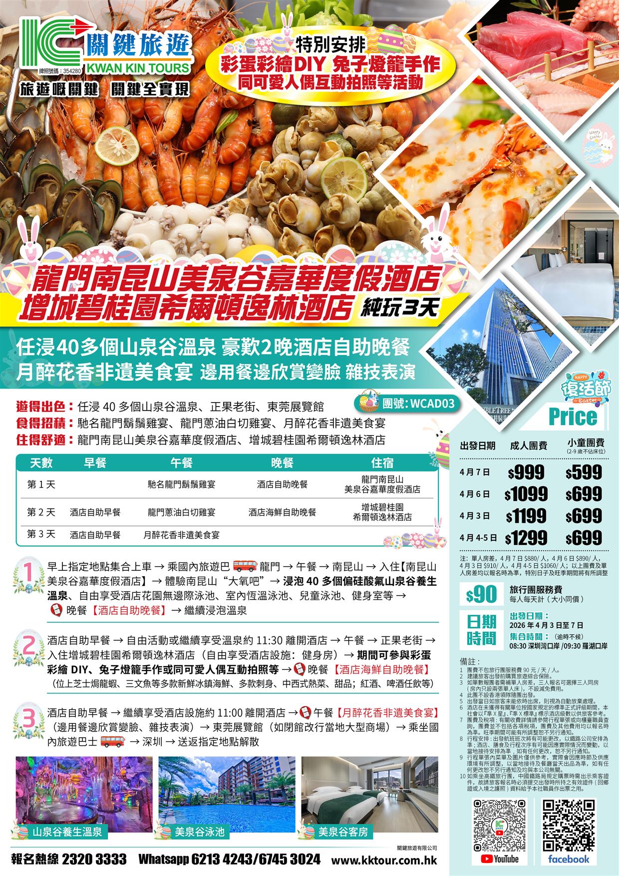 (復活加班)龍門美泉谷嘉華度假酒店+增城碧桂園希爾頓逸林酒店 浸山谷溫泉 豪歎2晚酒店自助餐純玩3天