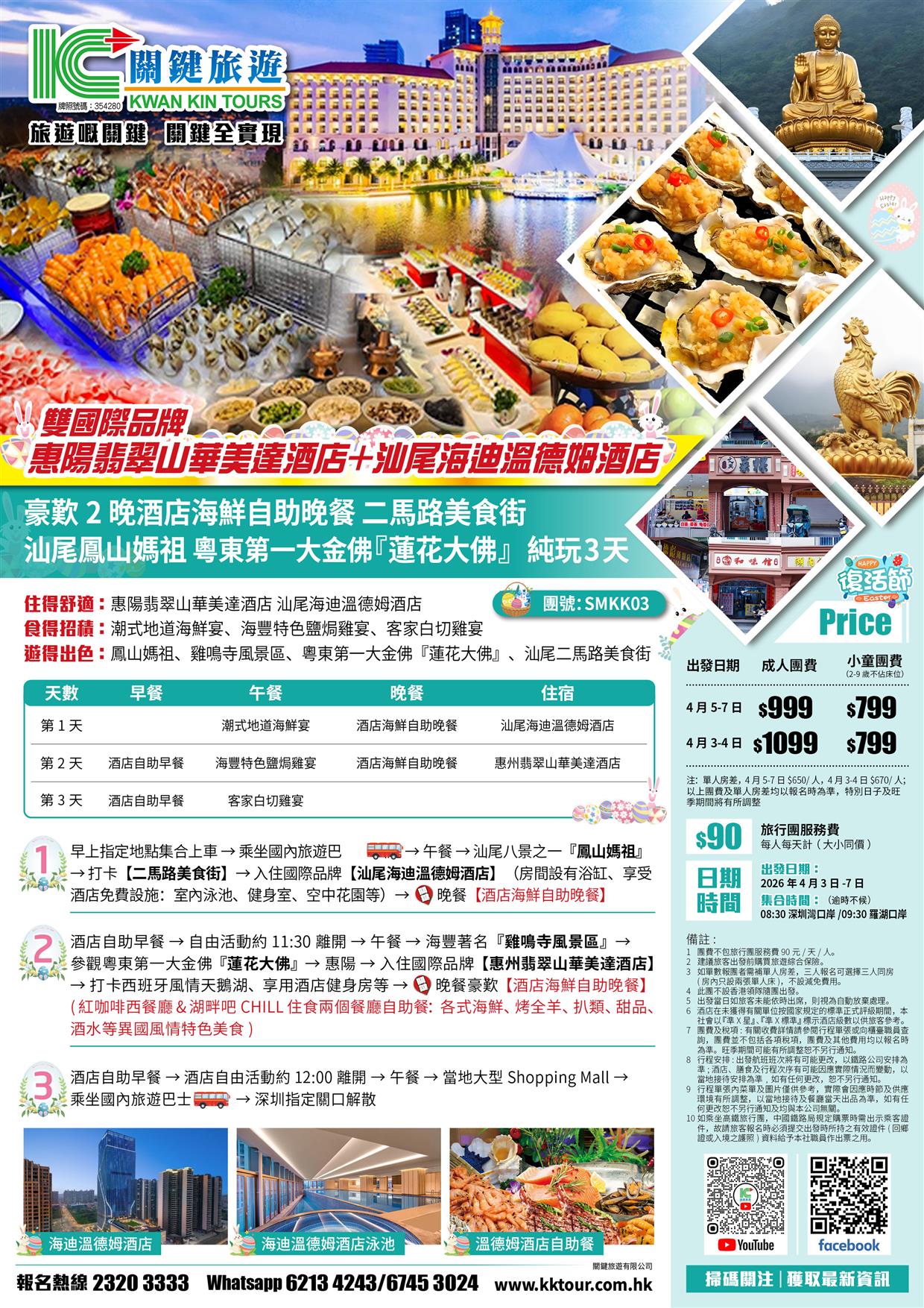 (復活加班)雙國際品牌 惠陽翡翠山華美達酒店+汕尾海迪溫德姆酒店 豪歎2晚酒店海鮮自助晚餐 純玩3天