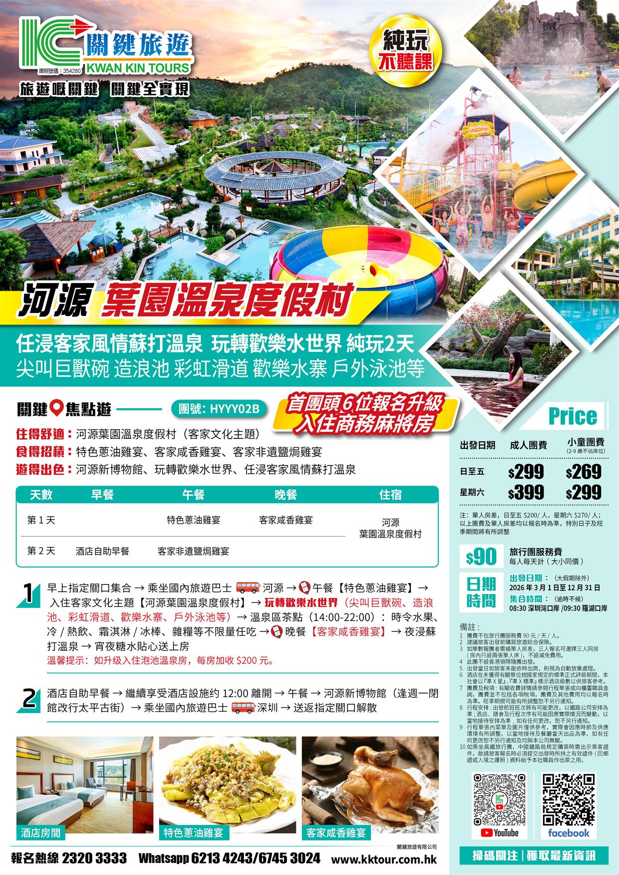 B線(頭6位升級入住商務麻將房)河源葉園溫泉度假村 任浸客家風情蘇打溫泉 純玩2天
