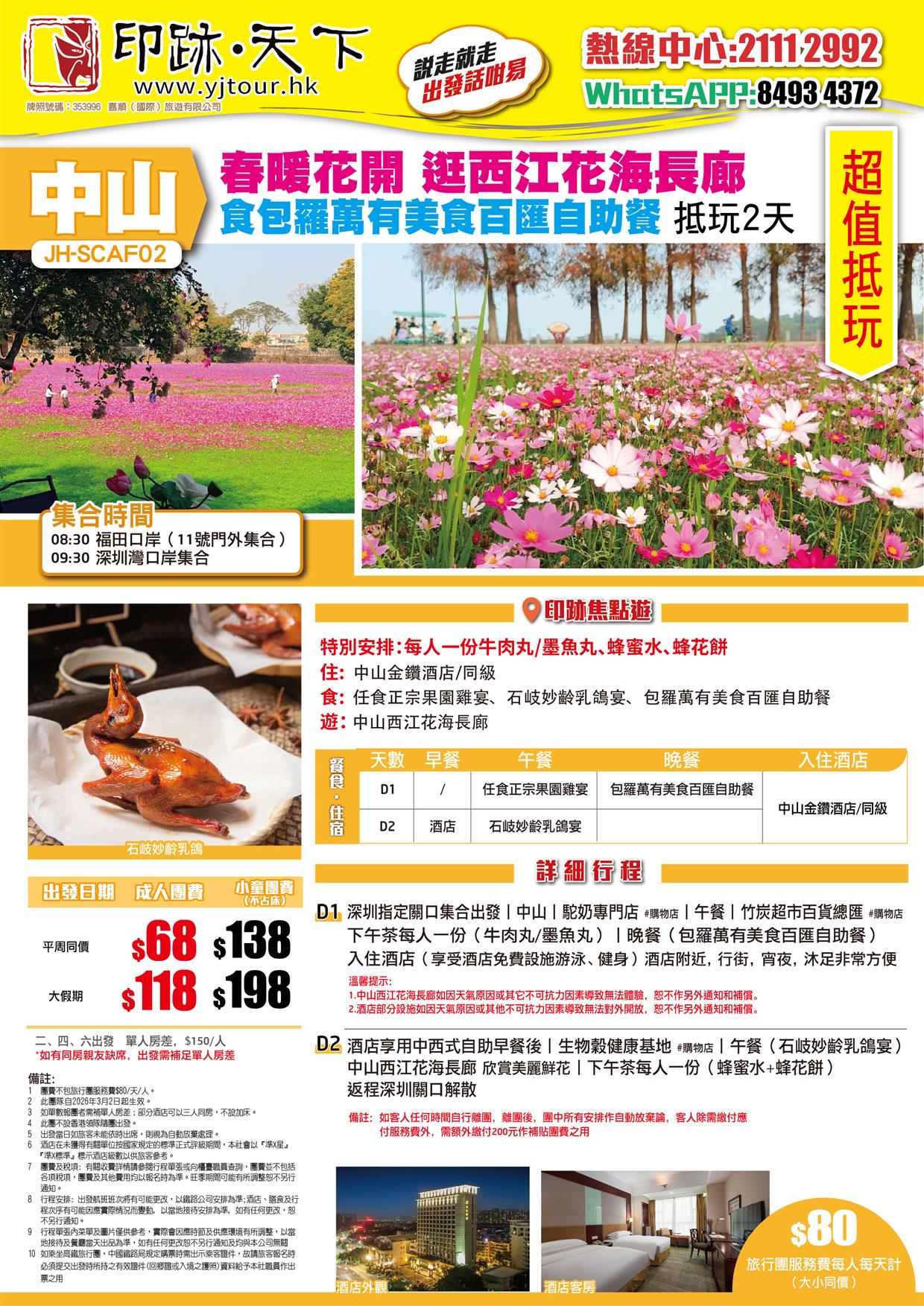 中山 春暖花開 逛西江花海長廊 食包羅萬有美食百匯自助餐 入住金鑽酒店/同級 抵玩 2天