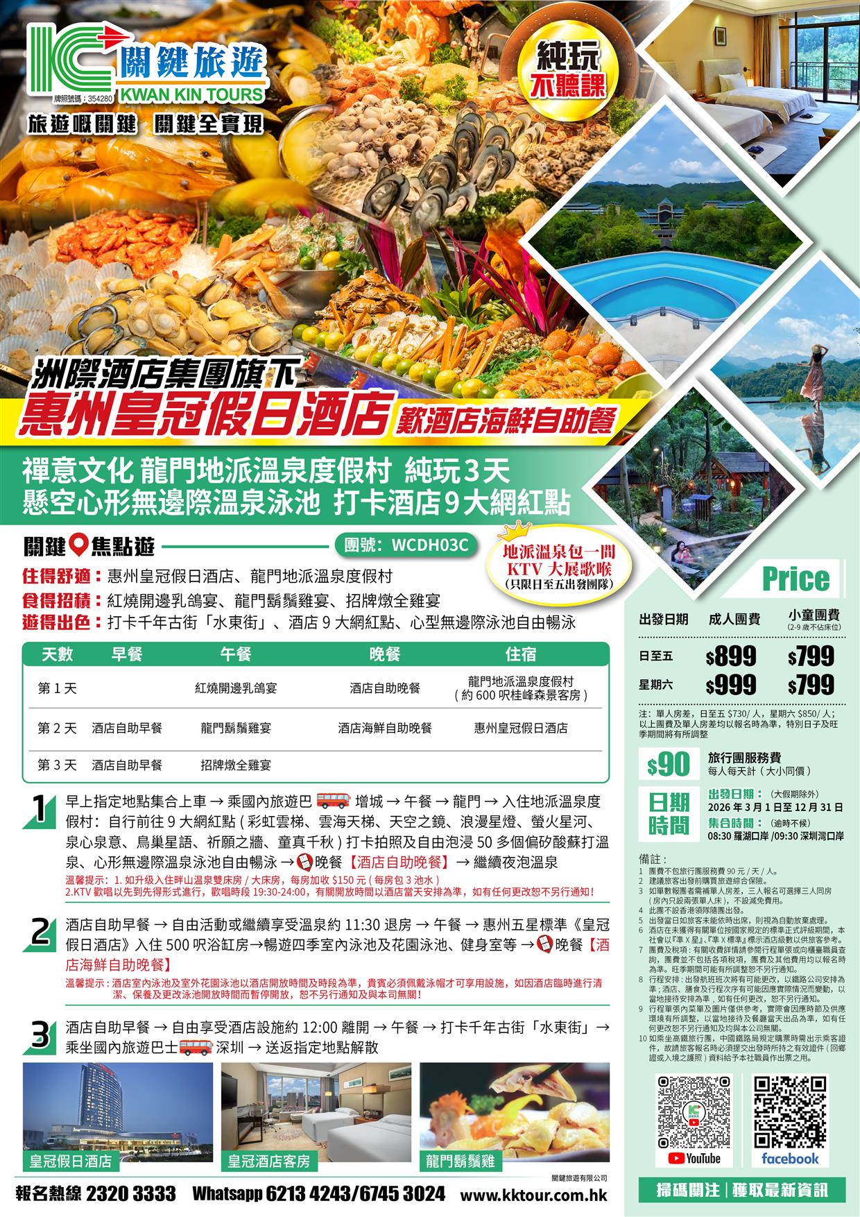 C線-龍門地派溫泉度假村+惠州皇冠假日酒店 豪嘆2晚酒店海鮮自助餐 打卡酒店9大網紅點 純玩3天