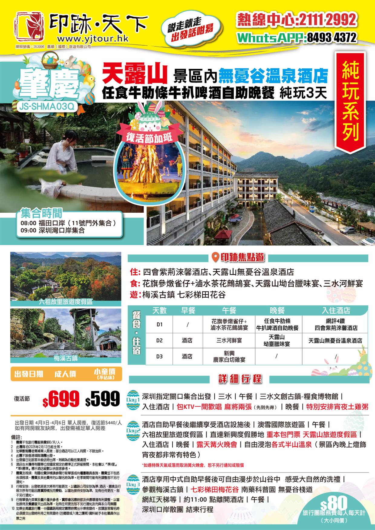肇慶 天露山旅遊度假區 入住四會紫荊淶馨酒店 無憂穀溫泉酒店 任食牛肋條牛扒啤酒自助晚餐 純玩3天