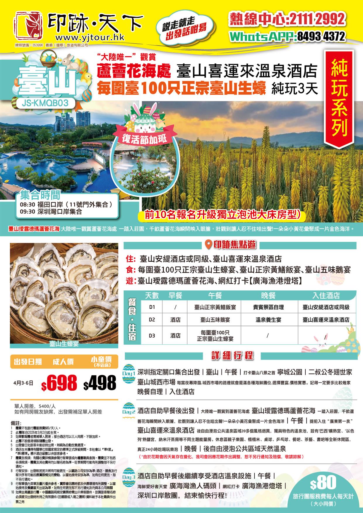 復活節加班:大陸唯一 觀賞蘆薈花海處 每圍臺100只正宗臺山生蠔 臺山喜運來溫泉酒店純玩3天
