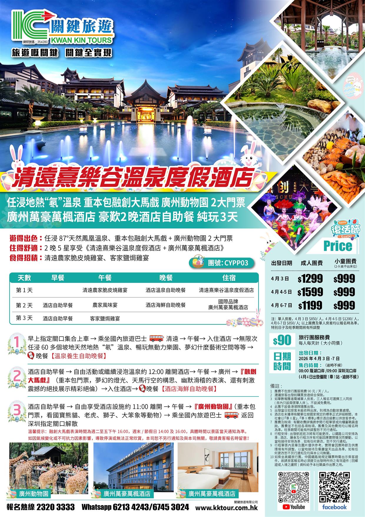 (復活加班)清遠熹樂谷溫泉酒店+廣州萬豪萬楓酒店 歎2晚酒店自助餐 融創馬戲+動物園 純玩3天
