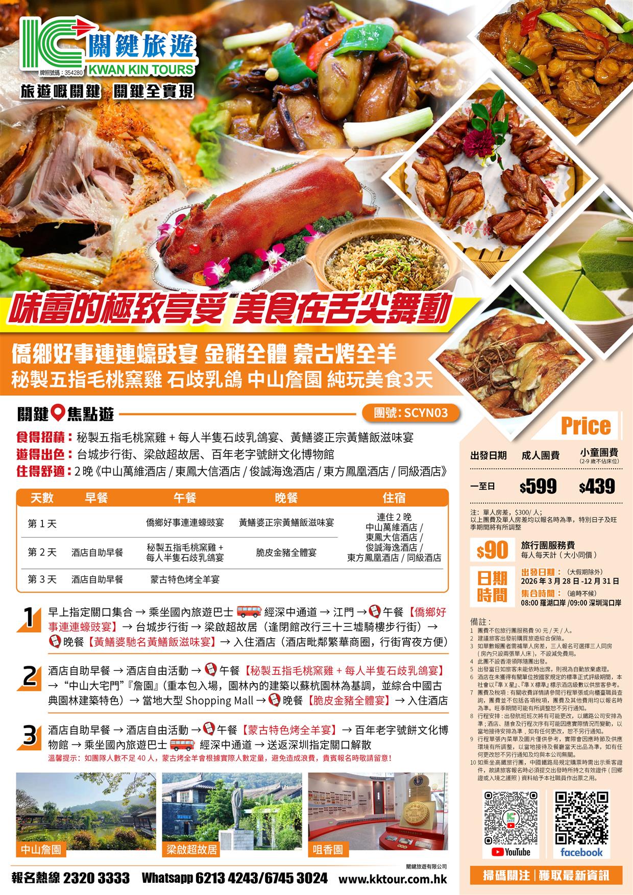 僑鄉好事連連蠔豉宴 金豬全體 蒙古烤全羊 秘製五指毛桃窯雞 石歧乳鴿 中山大宅門『詹園』純玩美食3天