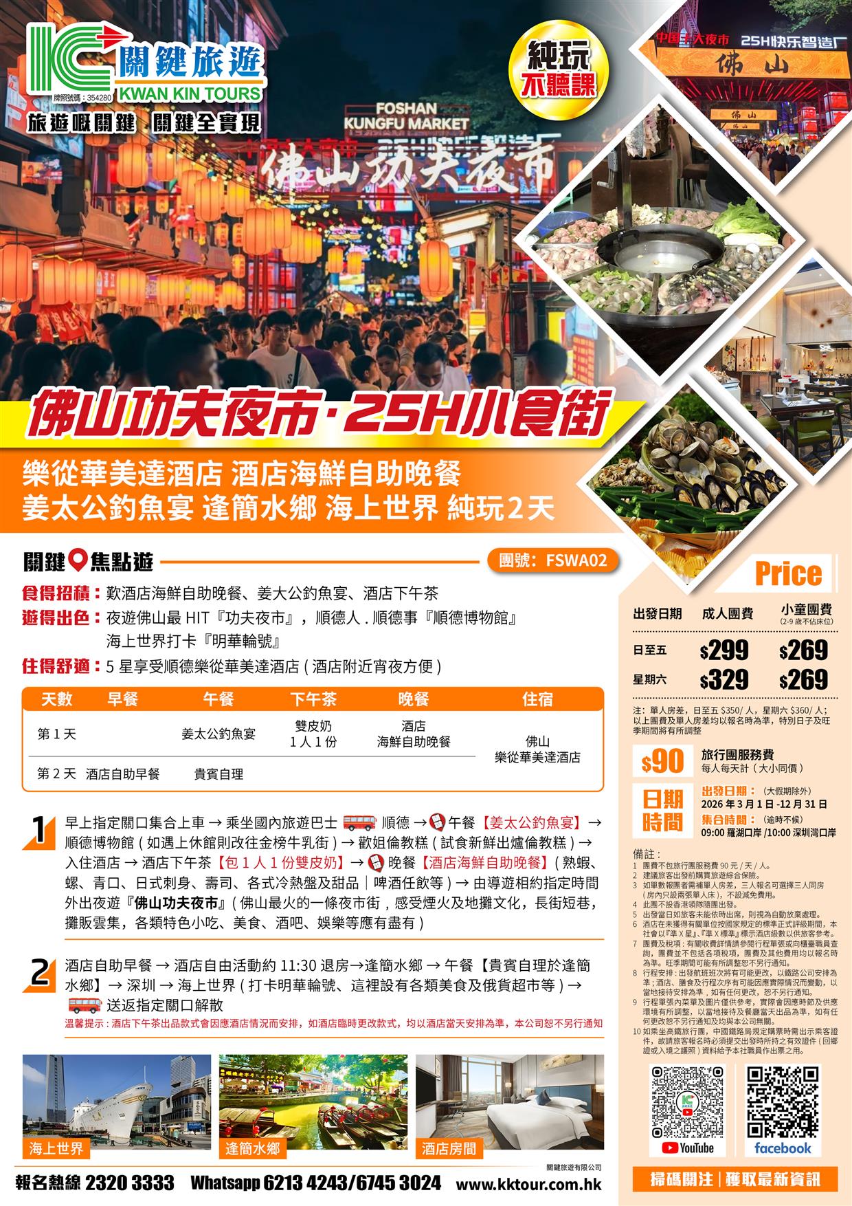 佛山功夫夜市 樂從華美達酒店 酒店自助晚餐 姜太公釣魚宴 逢簡水鄉 海上世界 純玩2天