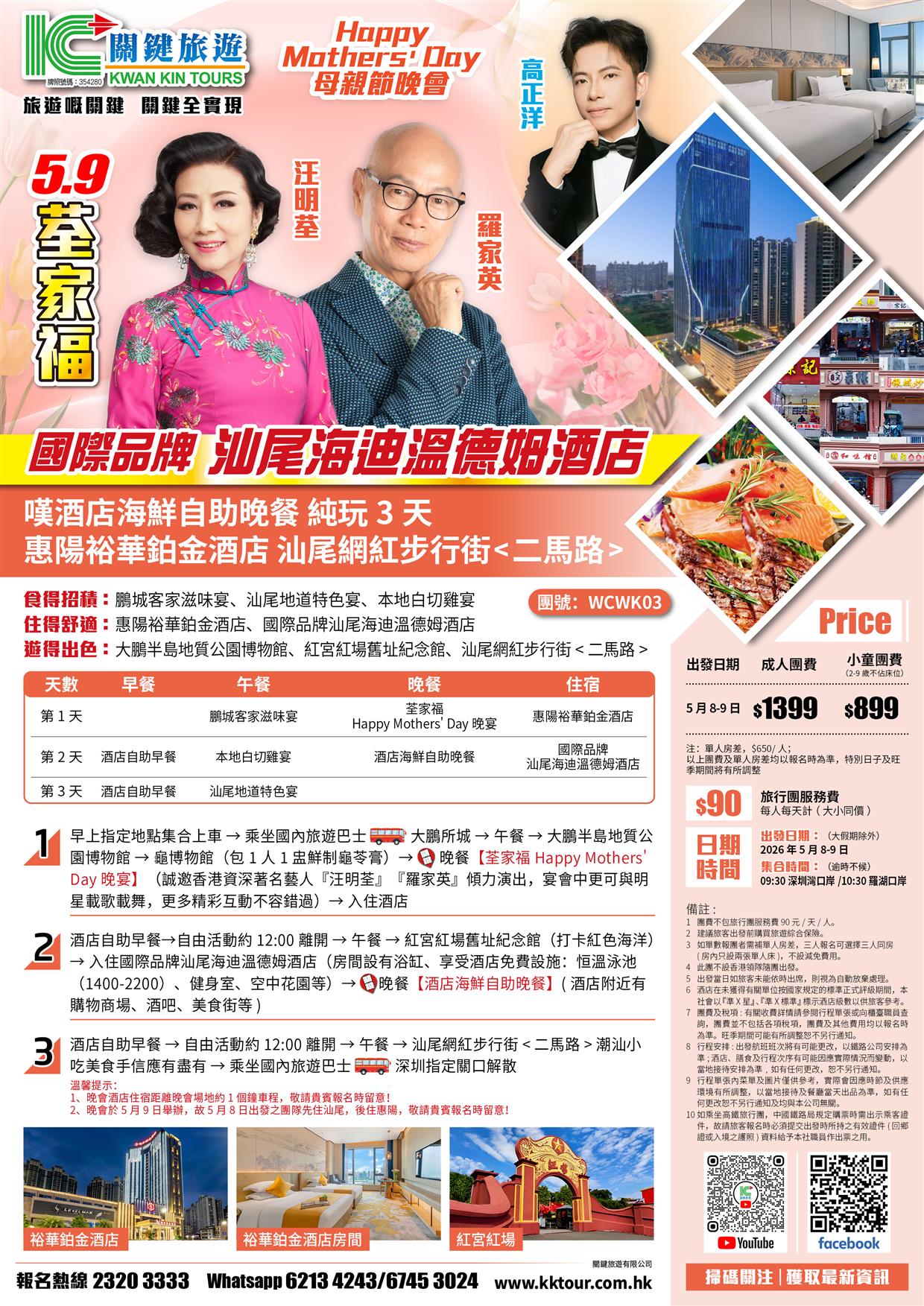 5.9荃家福Happy Mothers Day 汕尾海迪溫德姆酒店+惠陽裕華鉑金酒店 純玩3天