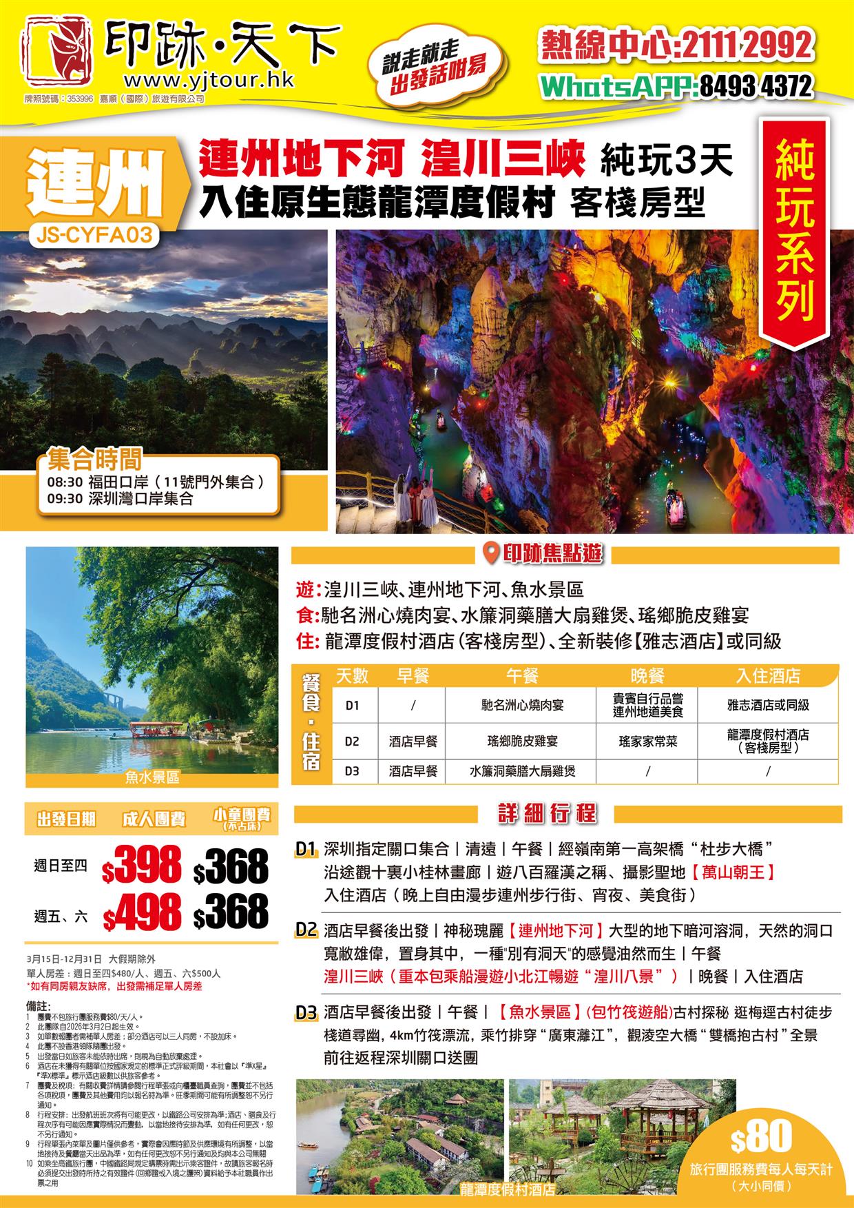 清遠 連州地下河 湟川三峽 入住原生態龍潭度假村 純玩3天