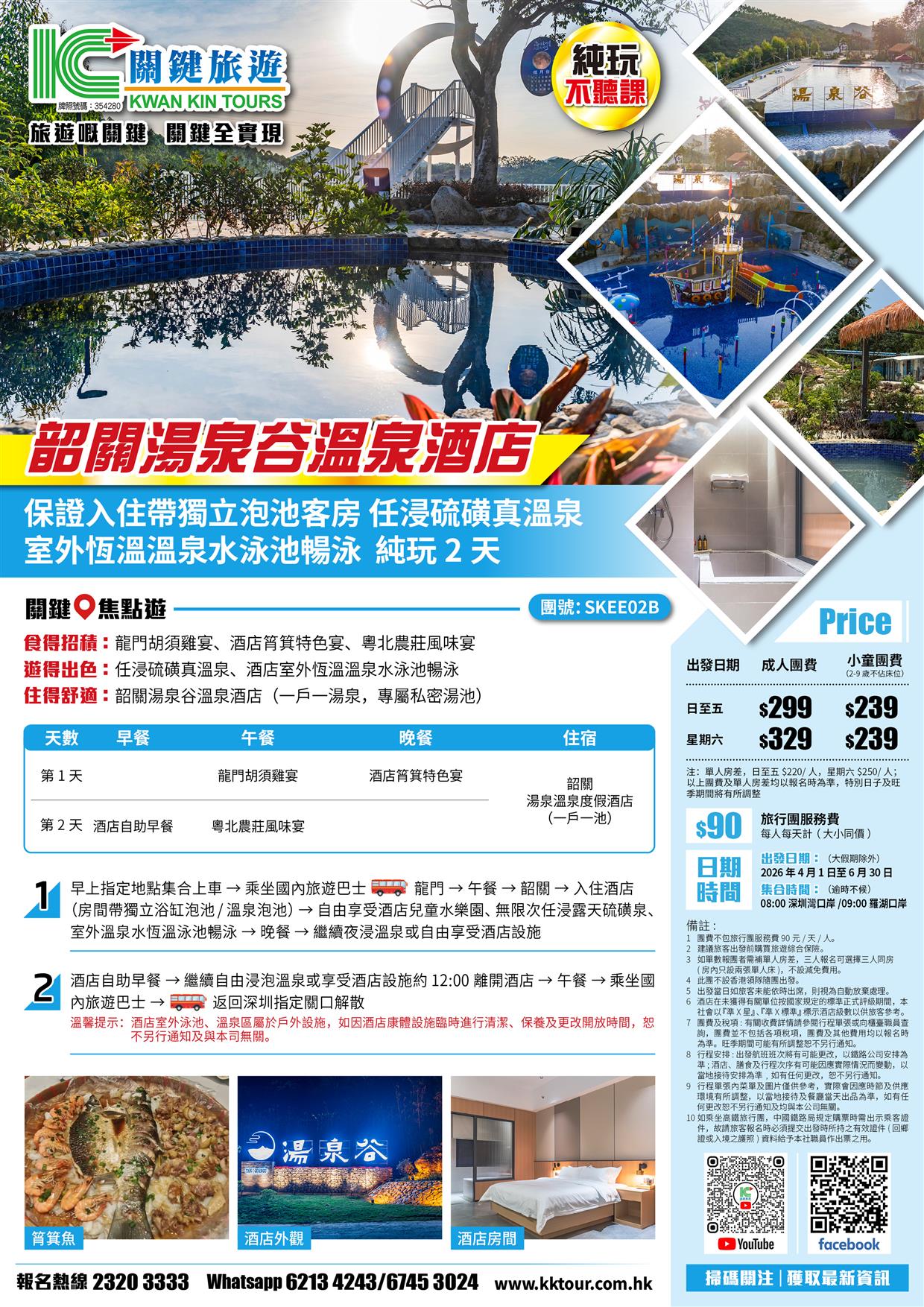 B線-韶關湯泉谷溫泉酒店 入住帶獨立泡池客房 任浸硫磺真溫泉 室外溫泉水泳池暢泳 純玩2天