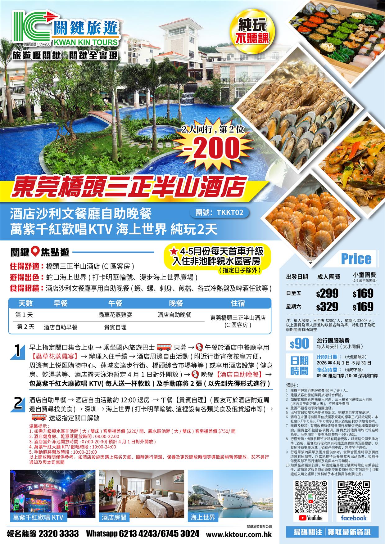 (2人同行第2位減200)東莞橋頭三正半山酒店、酒店沙利文餐廳自助晚餐純玩2天