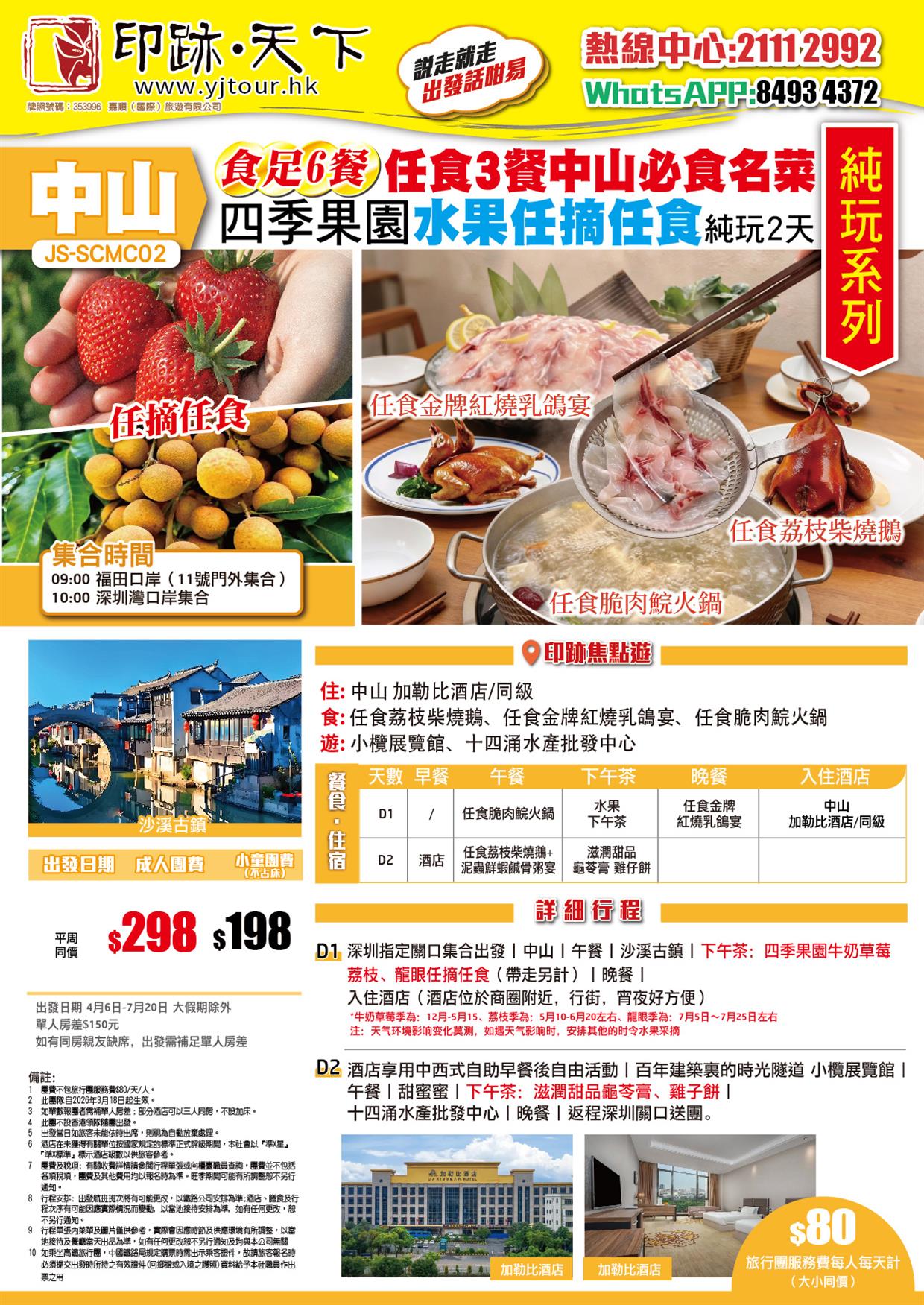中山 任摘任食牛奶草莓/荔枝/龍眼 任食中山必食名菜 入住中山【加勒比酒店】 純玩2天