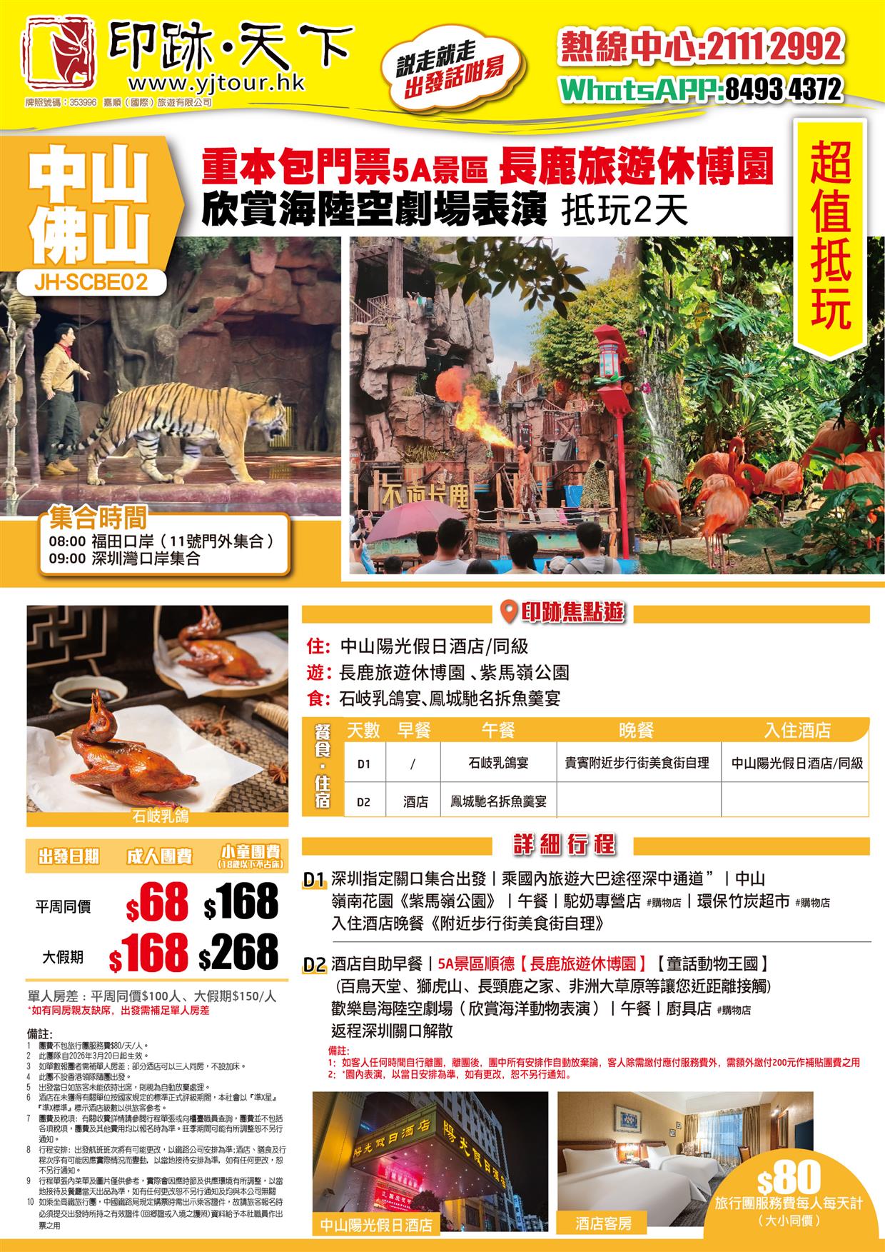 中山佛山 重本包門票5A景區【長鹿旅遊休博園】欣賞 海陸空劇場表演 抵玩 2天