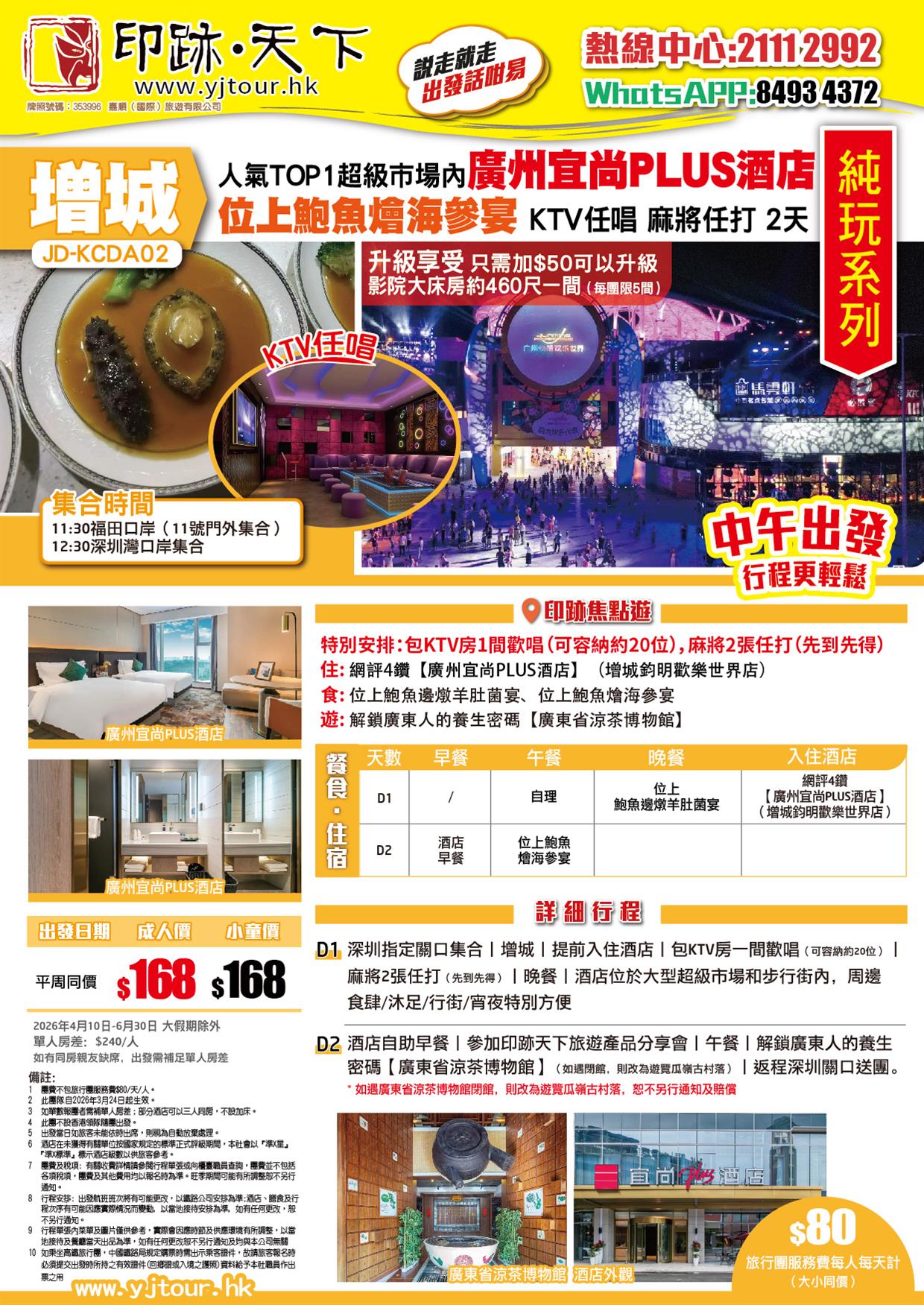 增城 人氣TOP1大型超級市場內【宜尚PLUS酒店】位上鮑魚燴海參宴 KTV任唱 麻將任打 純玩2天