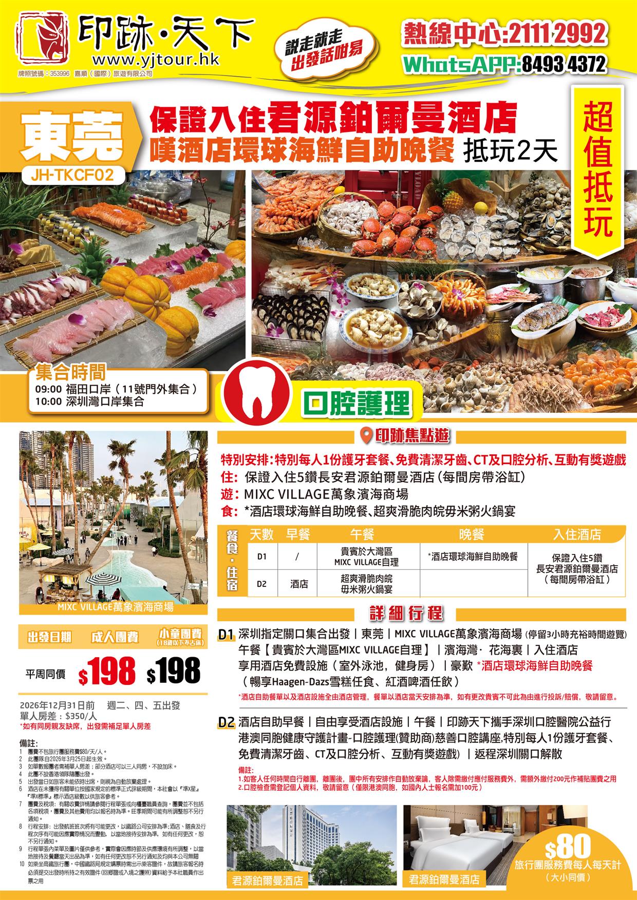 東莞 保證入住5鑽君源鉑爾曼酒店 浴缸房 嘆酒店環球海鮮自助晚餐 抵玩2天
