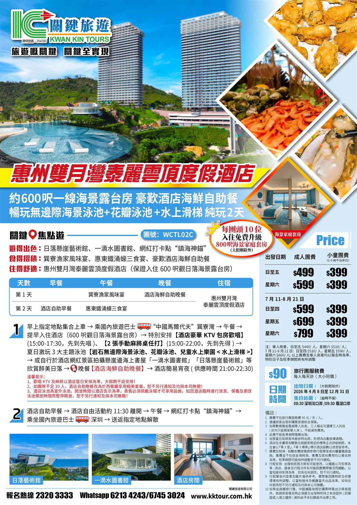 C線(頭10位升級海景家庭套房)雙月灣泰麗雲頂度假酒店 一線海景露台房 豪歎酒店海鮮自助餐 純玩2天