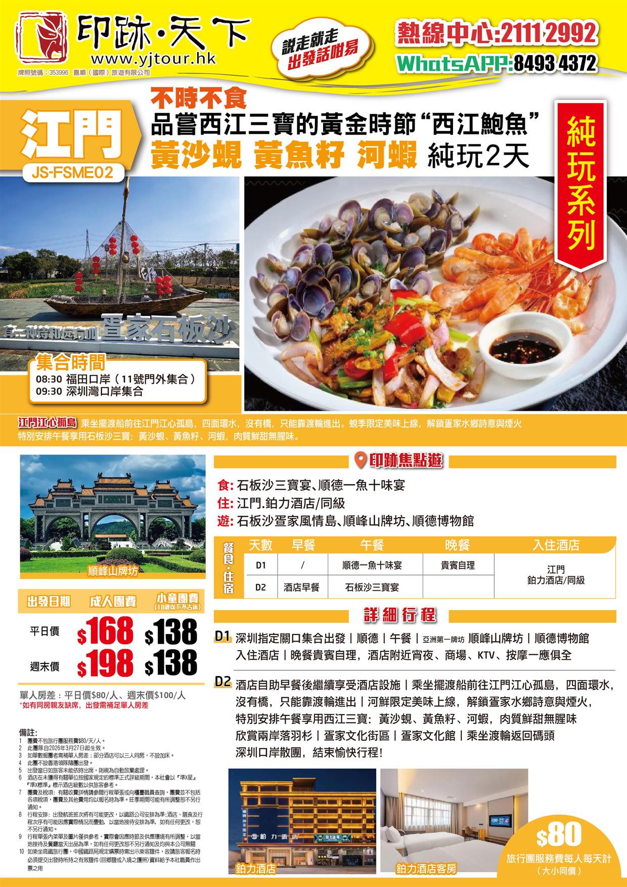 賣點:乘坐擺渡船前往江門江心孤島,四面環水,沒有橋,只能靠渡輪進出→蜆季限定美味上線,解鎖疍家水鄉詩意與煙火,特別安排午餐享用石板沙三寶:黃沙蜆、黃魚籽、河蝦,肉質鮮甜無腥味