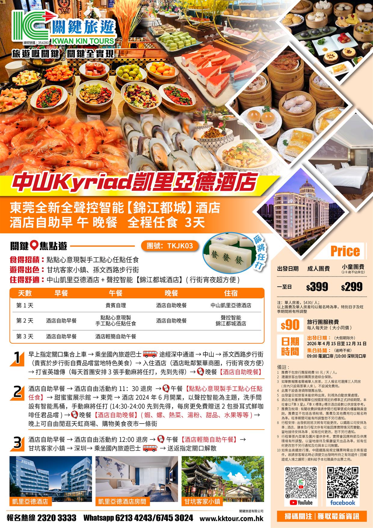 中山手工點心任點任食 凱里亞德酒店+東莞塘廈錦江都城酒店3天