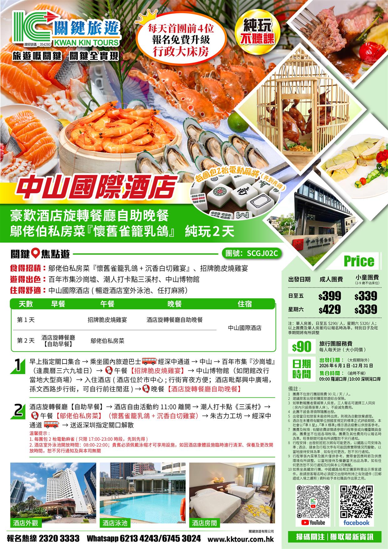 每天首團頭4位報名免費升級行政大床房(大假期除外)