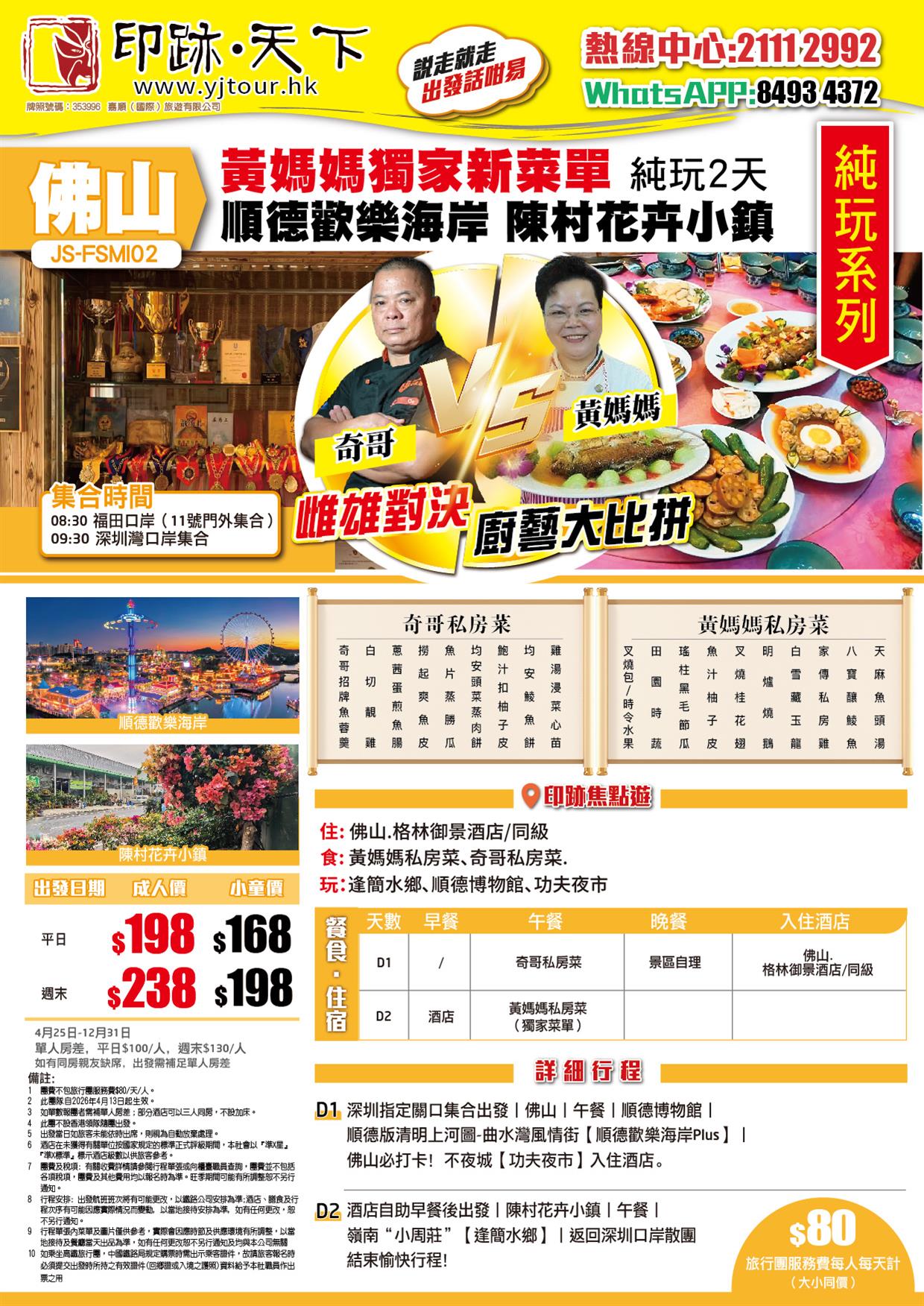 佛山 獨家新菜單 一皇一後 廚藝大比拼 黃媽媽私房菜 奇哥私房菜 佛山.格林禦景酒店 純玩2天