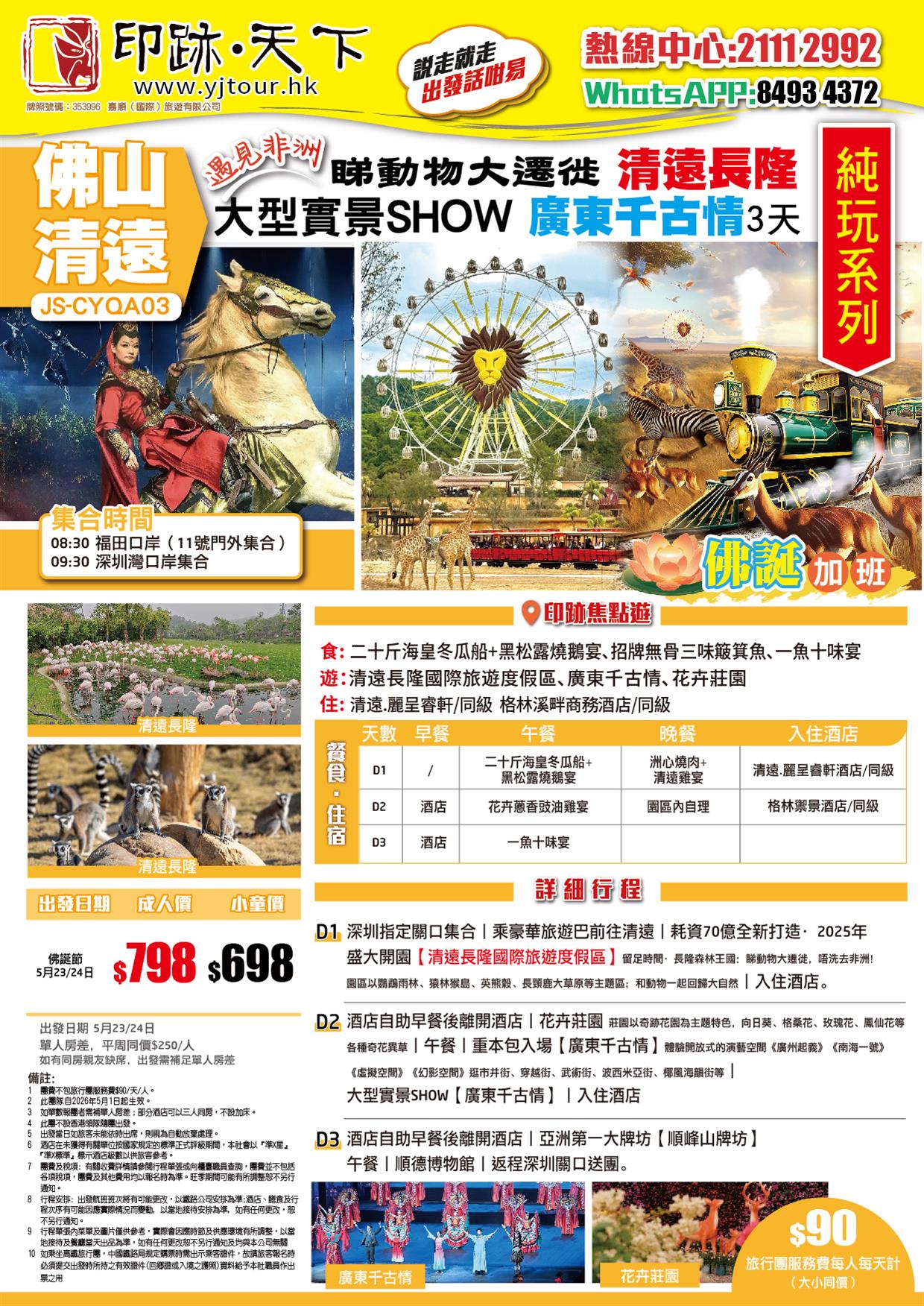 佛誕加班線:耗資70億全新打造·【清遠長隆國際旅遊度假區】+【廣東千古情】-品嘗特色美食 純玩3天