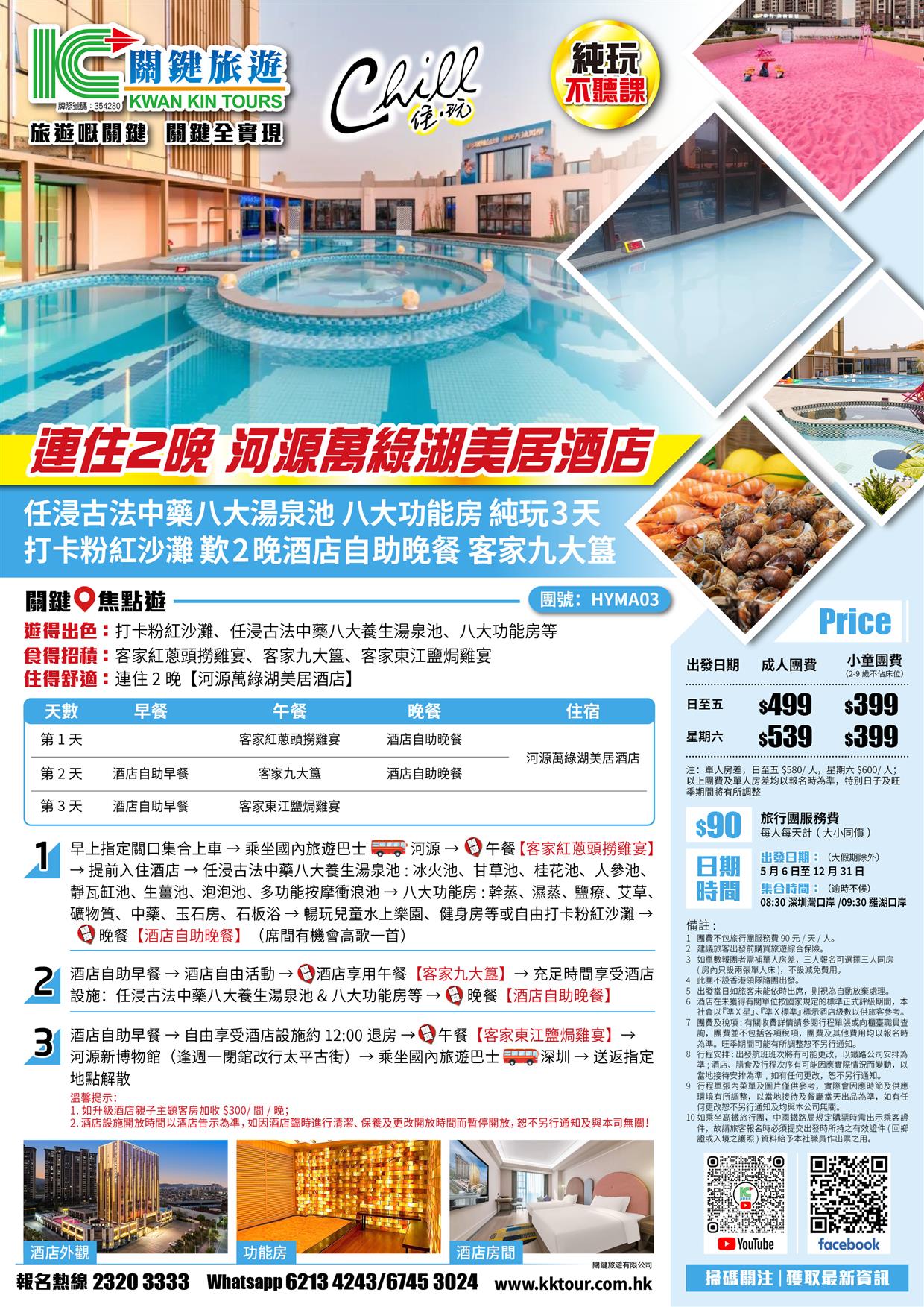 連住2晚 河源萬綠湖美居酒店 歎2晚酒店自助晚餐 任浸古法中藥湯泉 八大功能房 打卡粉紅沙灘純玩3天