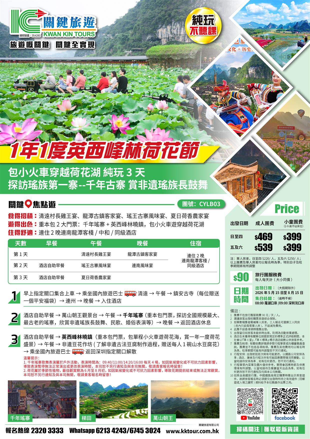 英西峰林荷花節 坐小火車遊荷花湖 連南千年瑤寨 賞瑤族歌舞表演 純玩3天