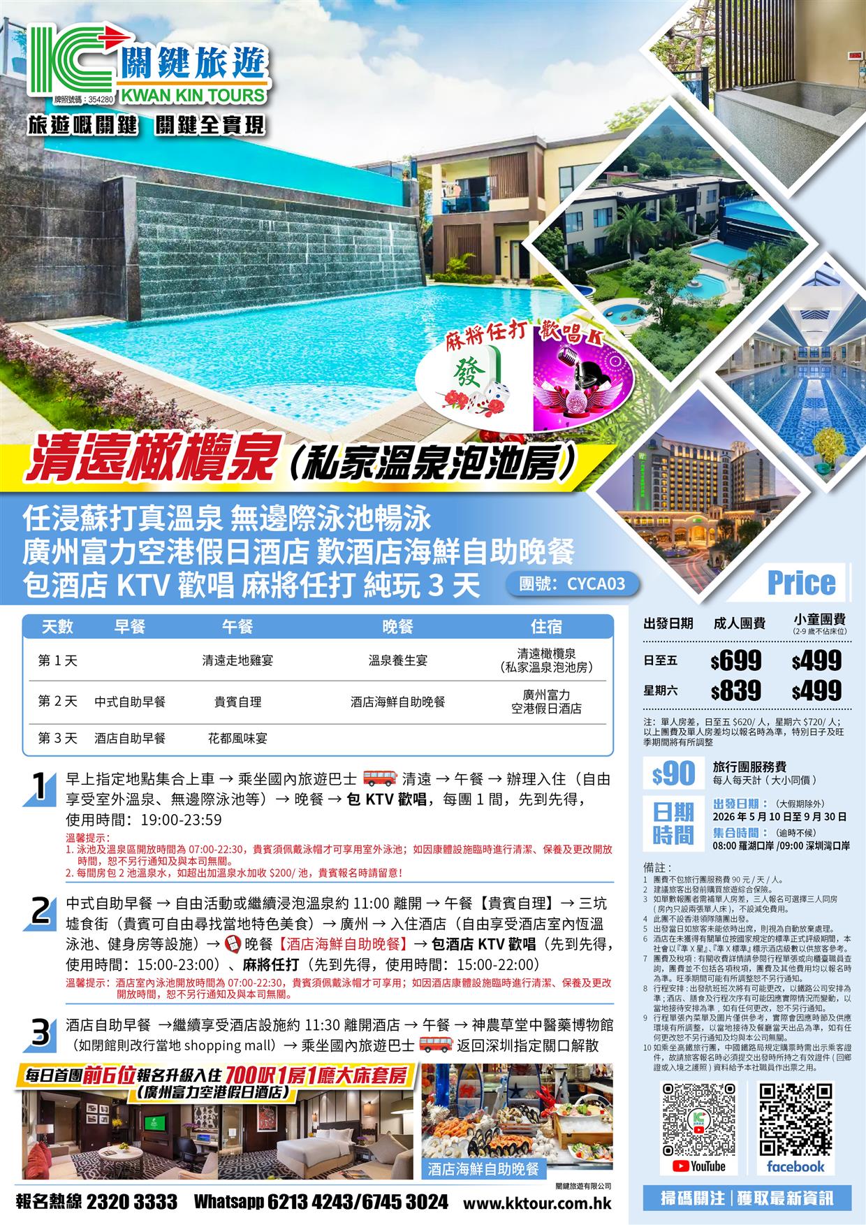 清遠橄欖泉(私家溫泉泡池房) 任浸蘇打真溫泉 廣州富力空港假日酒店 歎酒店海鮮自助晚餐 純玩3天