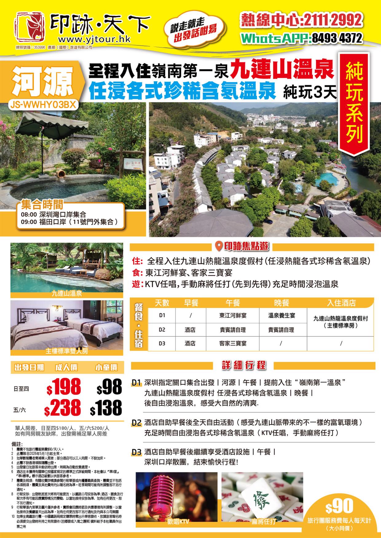 HeaX住玩嶺南第一泉 連住2晚九連山熱龍溫泉度假村-任浸各式珍稀含氡溫泉 純玩3天