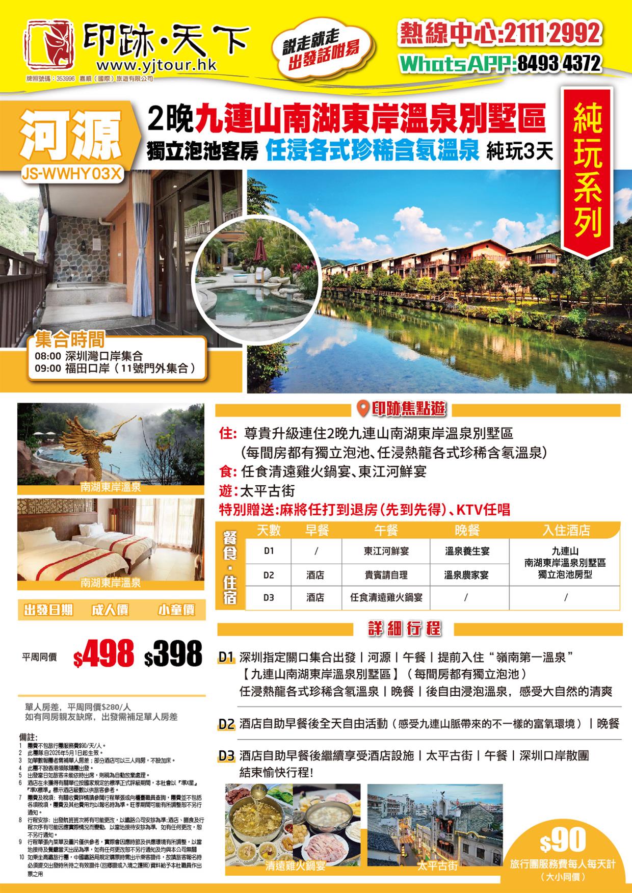 純玩X 升級回歸連住兩晚九連山南湖東岸溫泉別墅區(每間房都有獨立泡池)任浸各式珍稀溫泉3天